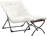 X-Large Saucer Chair with Foldable Ottoman, Comfy Oversized Folding Chair and Folding Footrest Stool Set, Faux-Fur Reading Chair and Footstool for Living Room, Bedroom, White Chair&Stool