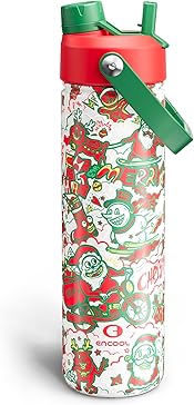 Christmas Insulated Water Bottle with Straw, Stainless Steel Water Bottle, Leak Proof BPA-Free, Keeps Cold for 24 Hours for Sports, Christmas Holiday Gifts for Women, 26 oz, Santa Rider