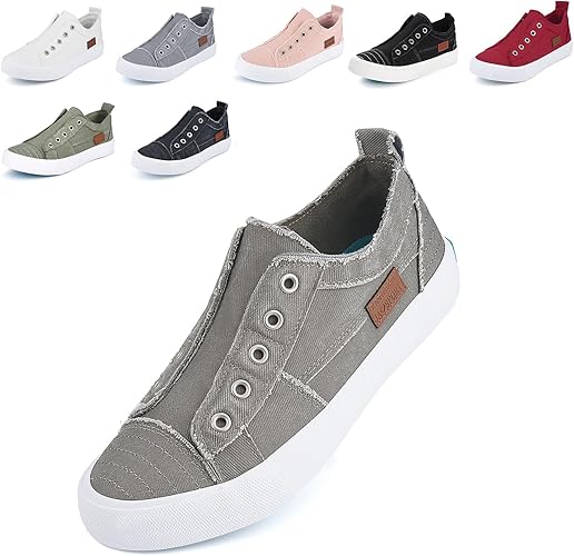 Womens Slip On Fashion Sneakers No Laces Comfortable Casual Low Canvas Sneakers Flats Walking Shoes
