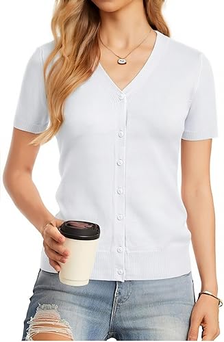 Womens 2026 Summer Short Sleeve Cardigan Sweaters Lightweight Cropped Shrug Cardigan Business Casual Clothing Top