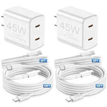 𝟰𝟱𝗪 Dual Port iPhone 15 16 17 Charger Fast Charging 2x6ft+2x10ft,USB C Fast Charger Block and Long Type C to C Cable Cord for Apple iPhone 17 Pro Max/17 Air/16 Pro/15 Plus/iPad Mini Plug Cube Brick