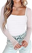 Womens Square Neck Mesh Long Sleeve Bodysuit Shapewear Corset Tops Sexy Concert Outfits Party Shirts