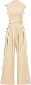 Womens Jumpsuit Dressy Casual Summer Outfits One Piece Cap Sleeve Mock Neck Wide Leg Pants Rompers with Pockets